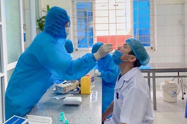 Trung tâm Kiểm soát bệnh tật tỉnh Thái Bình lấy mẫu bệnh phẩm sàng lọc SARS-CoV-2 (Ảnh: CDC Thái Bình)