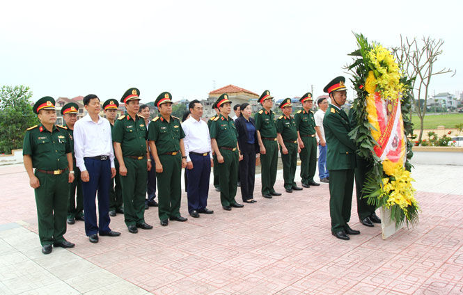 Thượng tướng Phan Văn Giang cùng các đại biểu dâng hương tại Đài tưởng niệm các Anh hùng liệt sĩ phường Tân Thịnh.