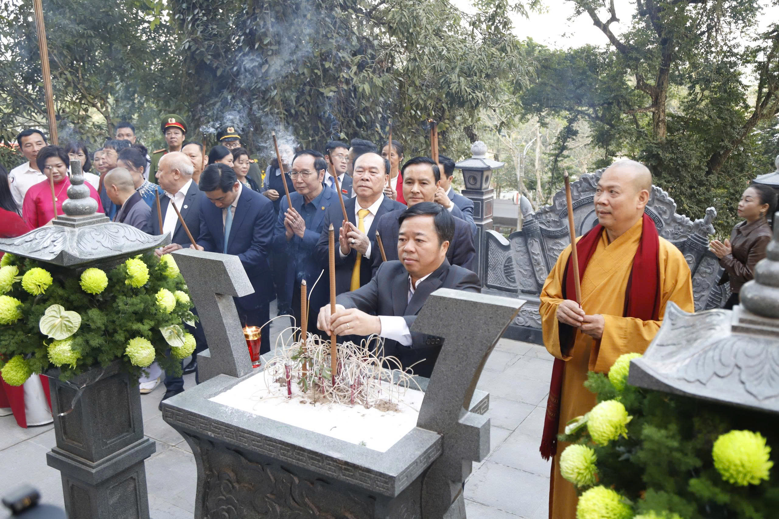 Ủy viên Ban Thường vụ Tỉnh ủy, Phó Chủ tịch UBND tỉnh, Bùi Văn Lương và các đại biểu dâng hương tại đền Đuổm.