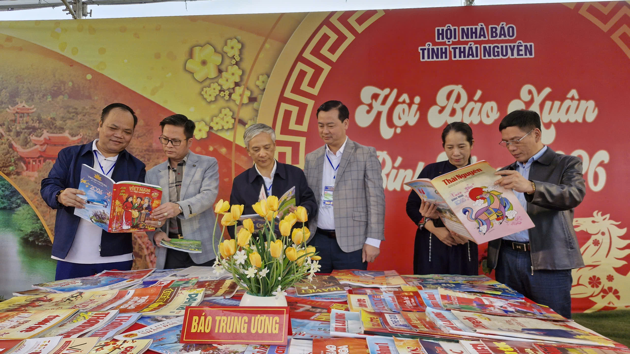 Phát biểu tại Lễ Khai mạc, Phó TBT Báo và Phát thanh, truyền hình Thái Nguyên, Phó Chủ tịch Hội nhà báo tỉnh, Nguyễn Ngọc Sơn cho biết: Hội Báo Xuân Bính Ngọ 2026 dành không gian trang trọng để trưng bày, giới thiệu hàng trăm ấn phẩm báo Tết đặc sắc của các cơ quan báo chí Trung ương, báo Đảng các tỉnh, thành phố, các tạp chí chuyên ngành và ấn phẩm báo chí của Thái Nguyên. Mỗi ấn phẩm được lựa chọn, sắp đặt công phu, giống như một bức tranh “báo chí toàn cảnh” sinh động phản ánh toàn diện đời sống chính trị, kinh tế, văn hóa, xã hội của đất nước và của tỉnh trong năm qua. Phát huy niềm tự hào Thái Nguyên nơi ra đời Hội Nhà báo Việt Nam và nhiều cơ quan báo chí cách mạng, đội ngũ người làm báo tỉnh Thái Nguyên luôn nhận thức sâu sắc trách nhiệm tiên phong trong đổi mới sáng tạo, trong sắp xếp tổ chức bộ máy và chuyển đổi số báo chí; tiếp tục tuyên truyền sâu sắc, toàn diện, kịp thời các chủ trương, chính sách của Đảng, Nhà nước, đặc biệt là tư tưởng chỉ đạo của Đảng về kỷ nguyên mới - kỷ nguyên vươn mình của dân tộc Việt Nam.