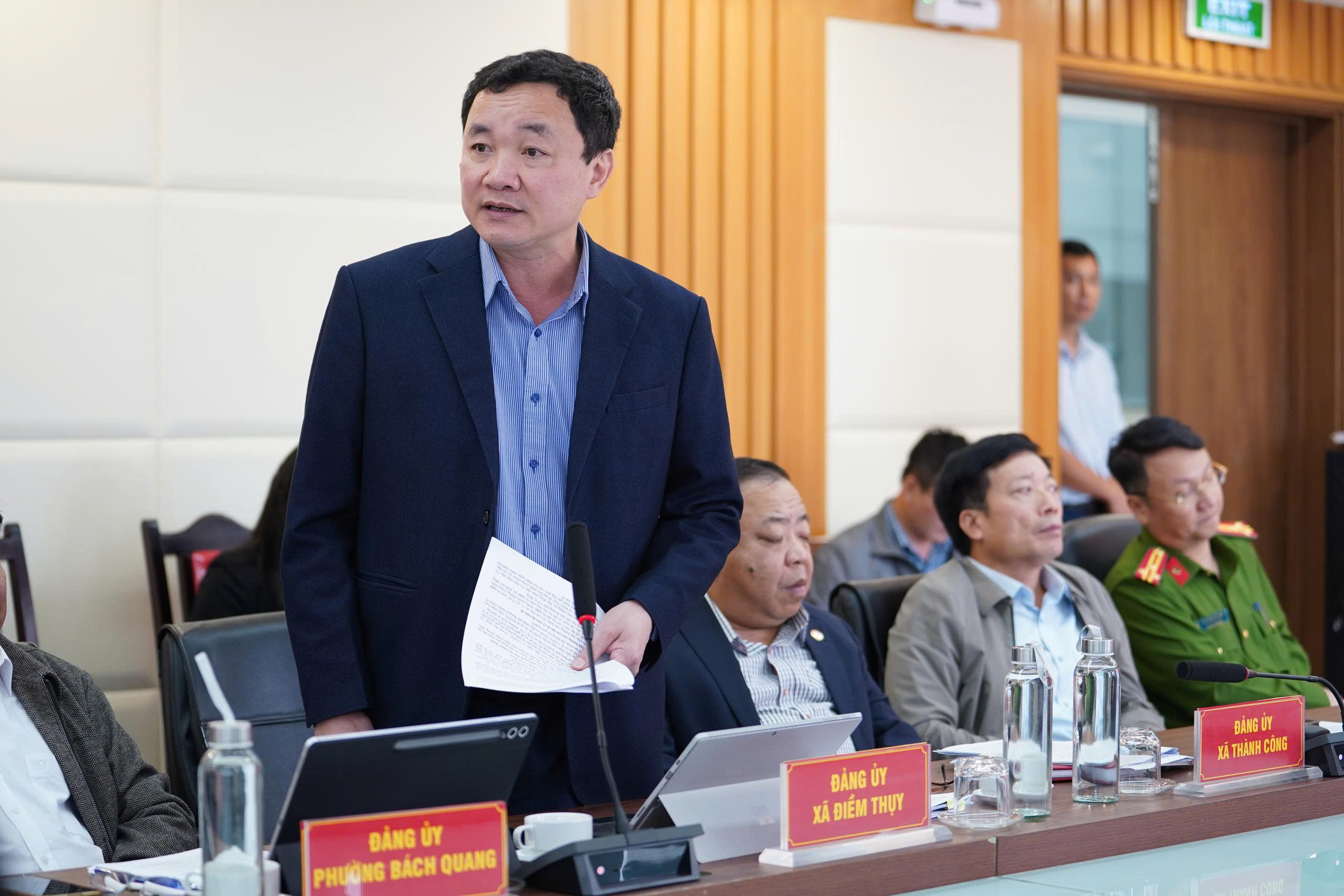 Lãnh đạo xã Điềm Thụy phát biểu tại buổi làm việc.