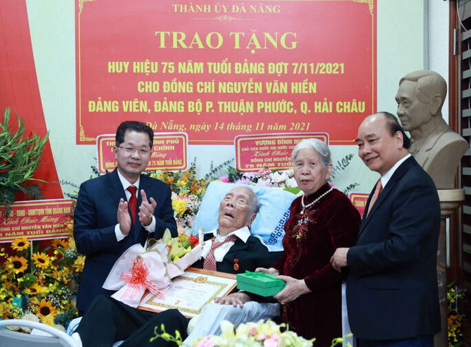 VNHN - Cụ Nguyễn Văn Hiền, thân sinh Chủ tịch nước Nguyễn Xuân Phúc vừa được Thành ủy Đà Nẵng trao tặng Huy hiệu 75 năm tuổi Đảng vào ngày 14/11 vừa qua.
