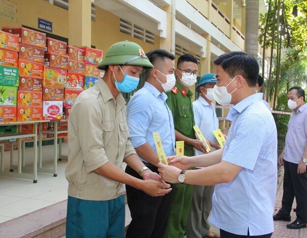 Nhân dịp đến kiểm tra, đồng chí Bí thư Tỉnh ủy, Chủ tịch HĐND tỉnh Đỗ Trọng Hưng đã tặng quà, khẩu trang y tế để hỗ trợ các khu cách ly trong phòng, chống dịch COVID-19; Ủy ban MTTQ tỉnh cũng hỗ trợ các nhu yếu phẩm cần thiết cho các khu cách ly của huyện và xã.
