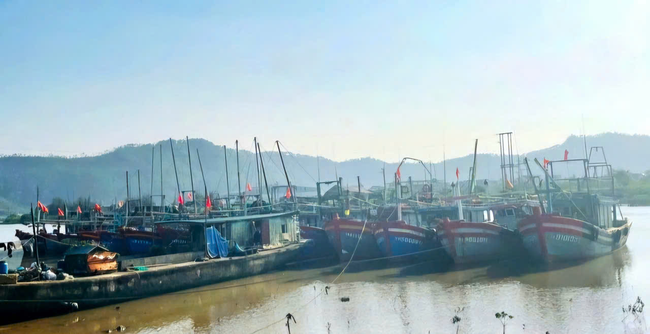 Tàu thuyền neo đậu tại xã Vạn Lộc tỉnh Thanh Hoá