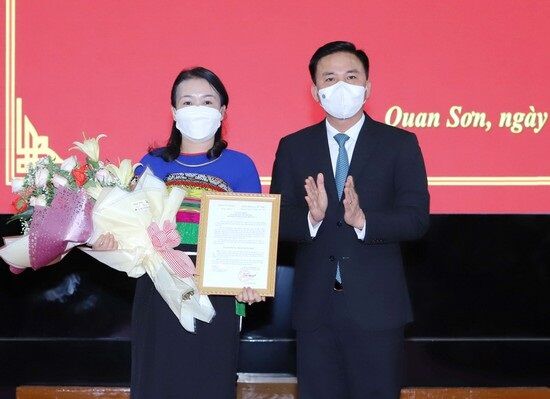 Công bố quyết định của Ban Thường vụ Tỉnh ủy về việc giao nhiệm vụ phụ trách điều hành hoạt động Đảng bộ huyện Quan Sơn cho đồng chí Lương Thị Hạnh, Phó Bí thư Thường trực Huyện ủy Quan Sơn nhiệm kỳ 2020 - 2025.