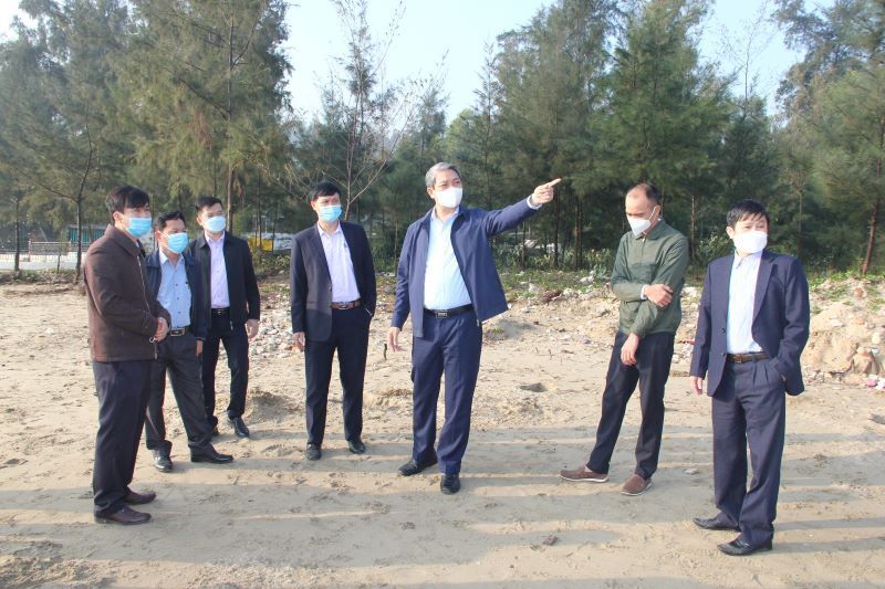 Đoàn công tác đã đi kiểm tra khu vực phải thiết lập hành lang bảo vệ tại bờ biển tại Thị xã Nghi Sơn và huyện Quảng Xương