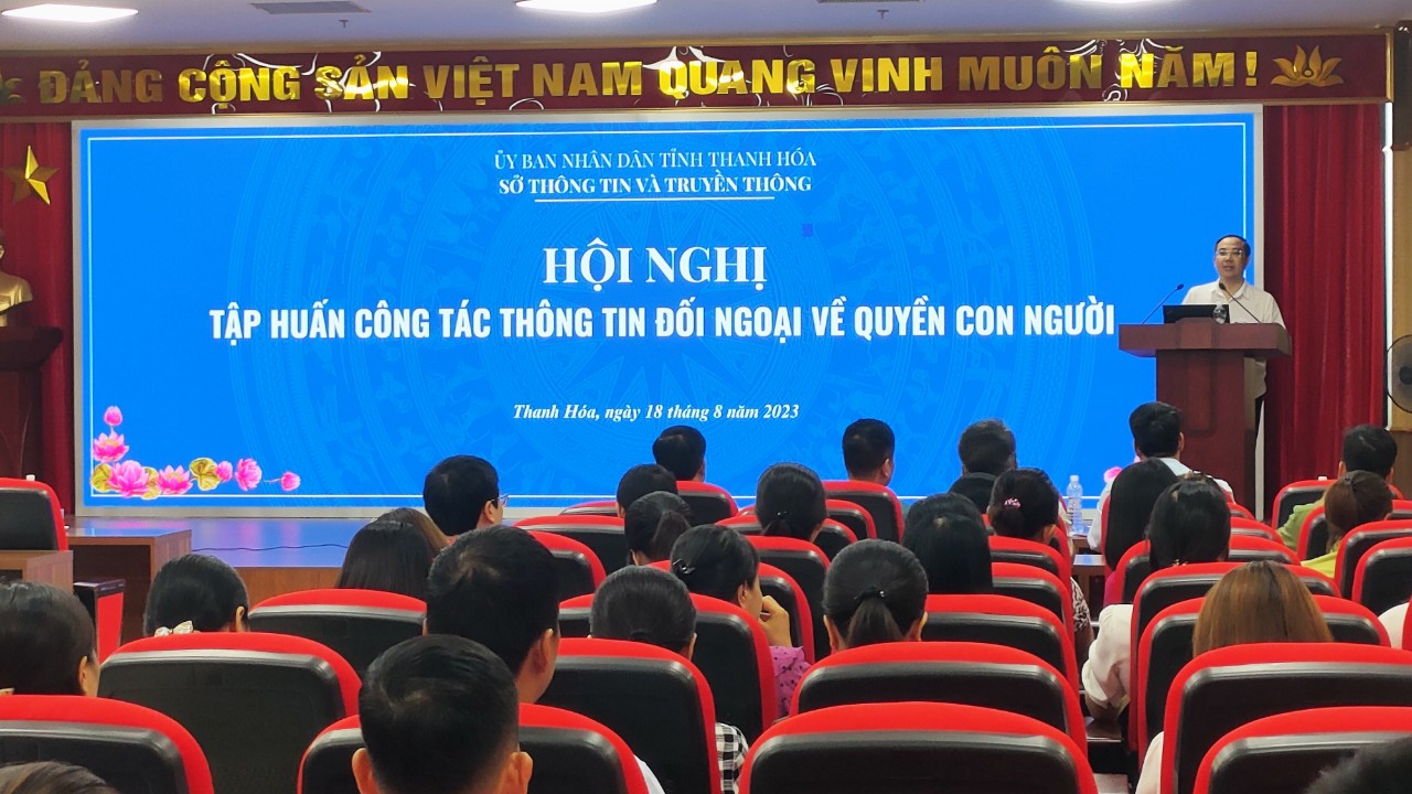 Phát biểu khai mạc, đồng chí Đỗ Hữu Quyết, Giám đốc Sở Thông tin và Truyền thông tỉnh Thanh Hoá cho biết: Hội nghị tập huấn công tác thông tin đối ngoại về quyền con người cho lực lượng làm công tác thông tin, truyền thông, thông tin đối ngoại nhằm tăng cường và nâng cao chất lượng, nội dung công tác thông tin, tuyên truyền về quyền con người trên các phương tiện thông tin đại chúng. Đảm bảo thông tin kịp thời, khách quan về các nỗ lực và thành tựu của các cấp chính quyền trong bảo đảm quyền con người ở địa phương, góp phần đấu tranh phản bác một cách thuyết phục các quan điểm sai trái, lợi dụng các vấn đề dân chủ nhân quyền chống phá Việt Nam của các thế lực thù địch.