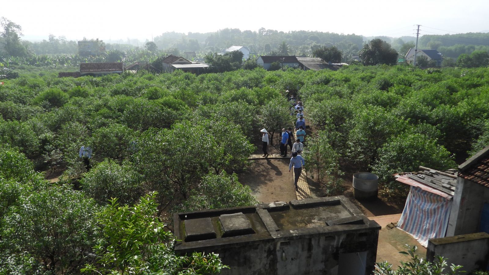 Đoàn Thẩm định liên ngành Trung ương thăm mô hình trồng đào tại xã Vân Sơn, huyện Triệu Sơn.