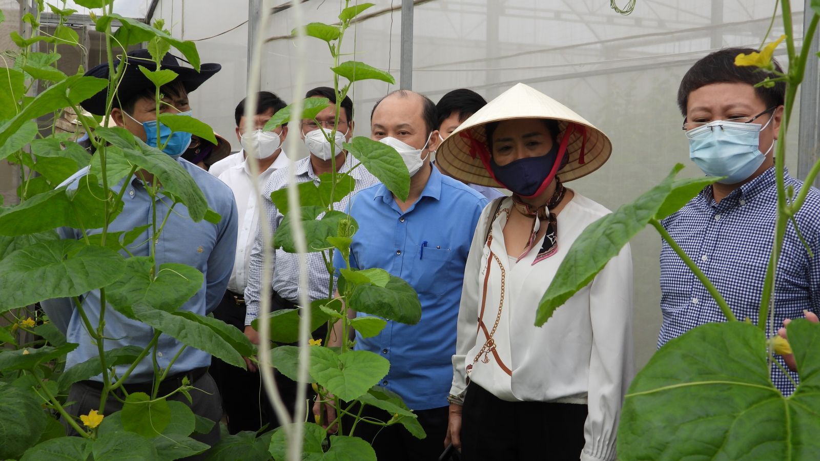 Đoàn Thẩm định liên ngành Trung ương thăm mô hình trồng dưa kim hoàng hậu tại thị trấn Thiệu Hóa, huyện Thiệu Hóa.
