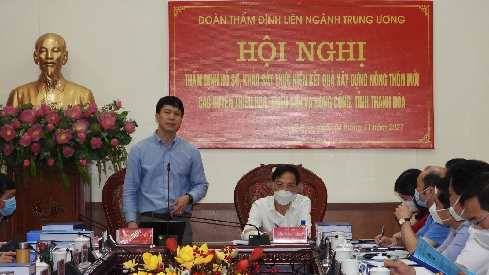 VNHN - Trong 2 ngày 03 và 04/11/2021, Đoàn Thẩm định liên ngành Trung ương do đồng chí Nguyễn Minh Tiến, Cục trưởng, Chánh Văn phòng Điều phối Nông thôn mới Trung ương (VPĐPNTMTW) làm trưởng đoàn, đã đi khảo sát thực tế, tổ chức hội nghị thẩm định hồ sơ, kết quả thực hiện xây dựng NTM các huyện Nông Cống, Triệu Sơn và Thiệu Hóa.