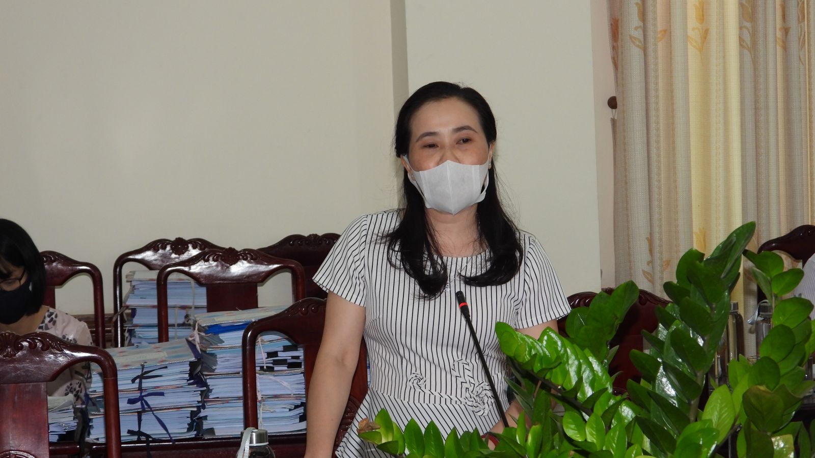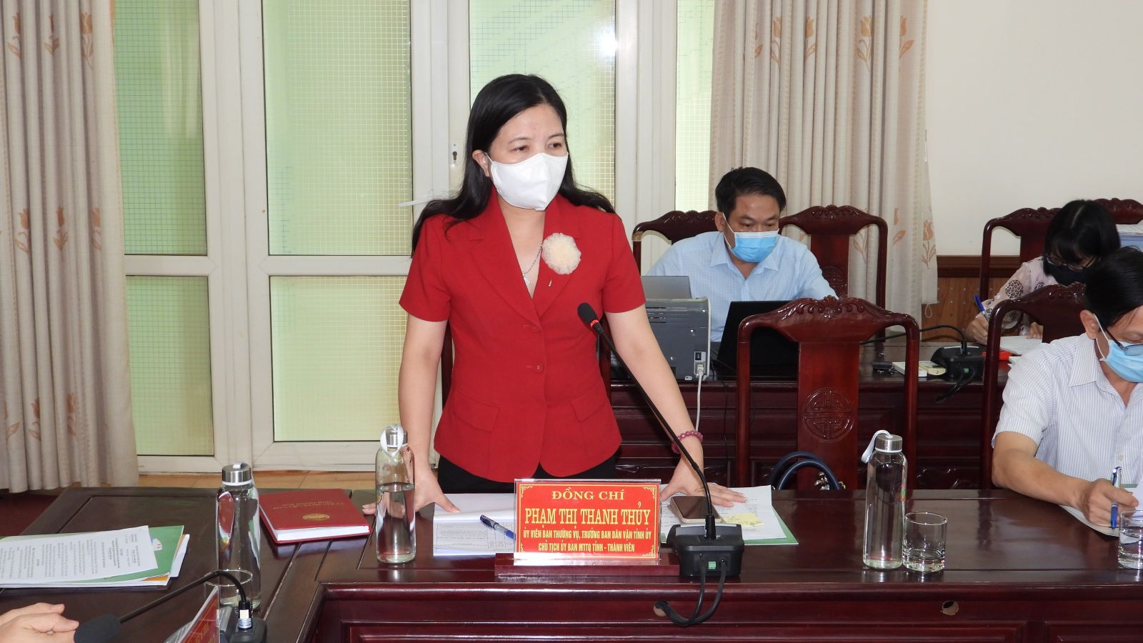 Đồng chí Phạm Thị Thanh Thủy, Uỷ viên Ban thường vụ, Trưởng ban Dân vận Tỉnh ủy, Chủ tịch ủy ban MTTQ tỉnh phát biểu tại Hội nghị
