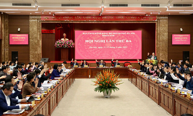 Ngày 11-3, Ban Chấp hành Đảng bộ Thành phố Hà Nội tổ chức Hội nghị lần thứ ba xem xét, thông qua 10 chương trình công tác toàn khóa, tình hình phòng, chống dịch bệnh, kết quả phát triển kinh tế - xã hội hai tháng đầu năm và một số nội dung quan trọng khác. Đồng chí Vương Đình Huệ, Ủy viên Bộ Chính trị, Bí thư Thành ủy Hà Nội chủ trì hội nghị.