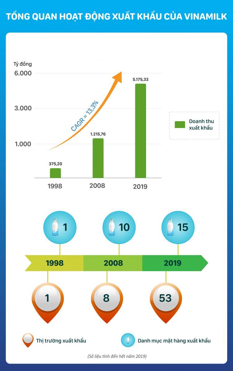 Quả thật cách đi này đã giúp Vinamilk không chỉ đi chắc mà còn đi nhanh trong hơn 20 năm qua. Sữa bột hiện là sản phẩm đóng góp lớn nhất trong doanh thu xuất khẩu của Vinamilk. Tổng kim ngạch xuất khẩu tính đến nay đã đạt 2,2 tỷ USD, với 54 quốc gia, vùng lãnh thổ mà thương hiệu này đã đặt chân đến.