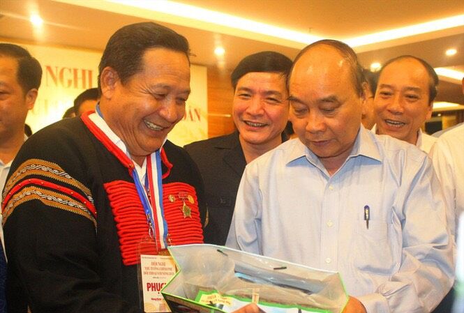 Thủ tướng Chính phủ Nguyễn Xuân Phúc và thầy thuốc Khăm Phết Lào tại buổi làm việc tại Tây Nguyên. (ảnh Tiền Phong)