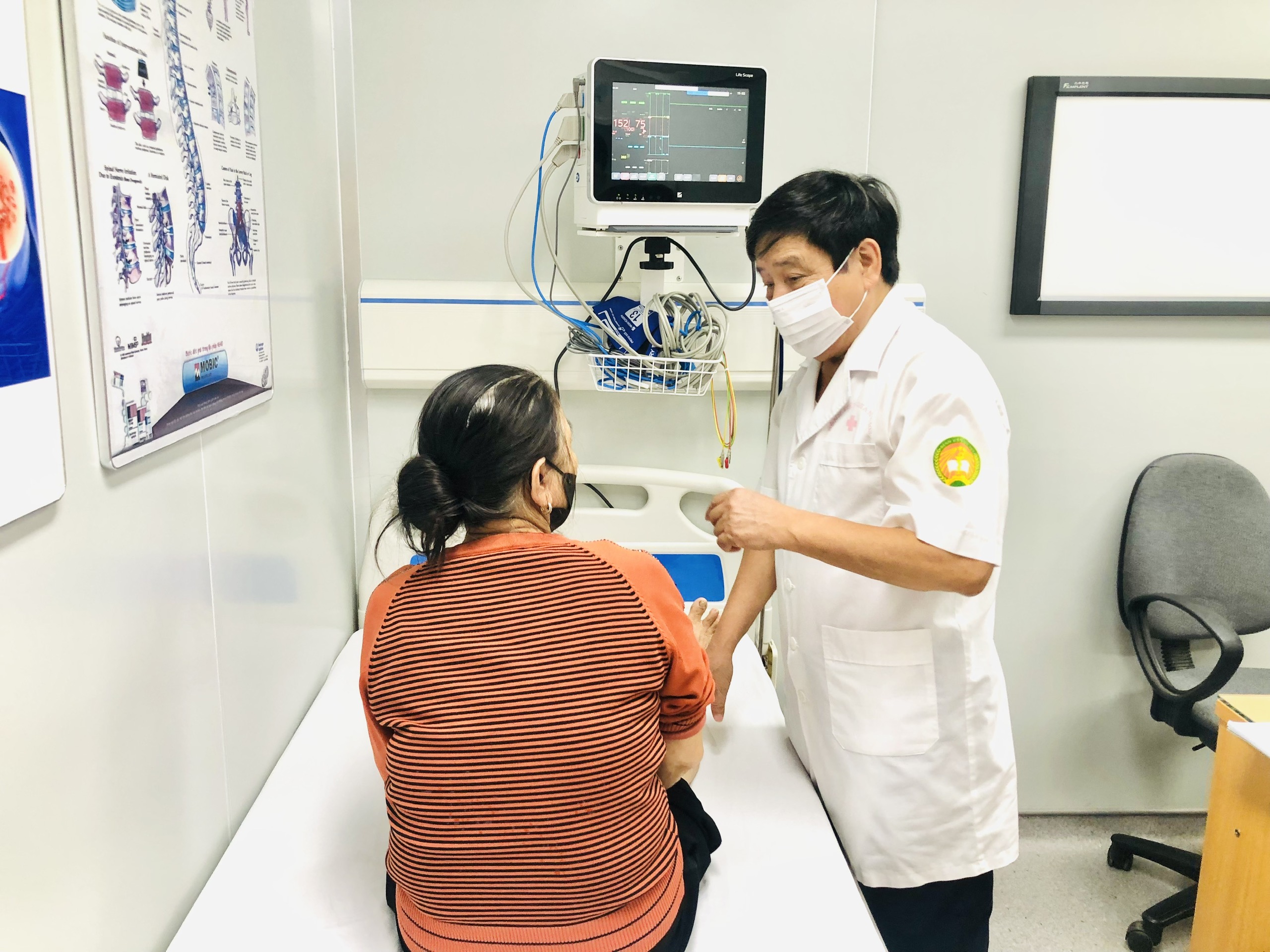 Thầy thuốc Nhân dân, PGS.TS. Đoàn Văn Đệ ân cần, tận tâm thăm khám, điều trị cho người bệnh tại Bệnh viện Đa khoa 16A Hà Đông.