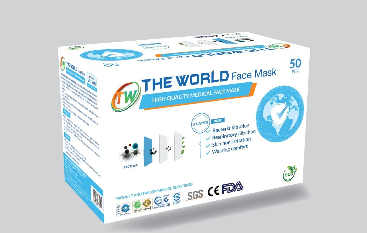 Mẫu sản phẩm khẩu trang kháng khuẩn mang thương hiệu The World