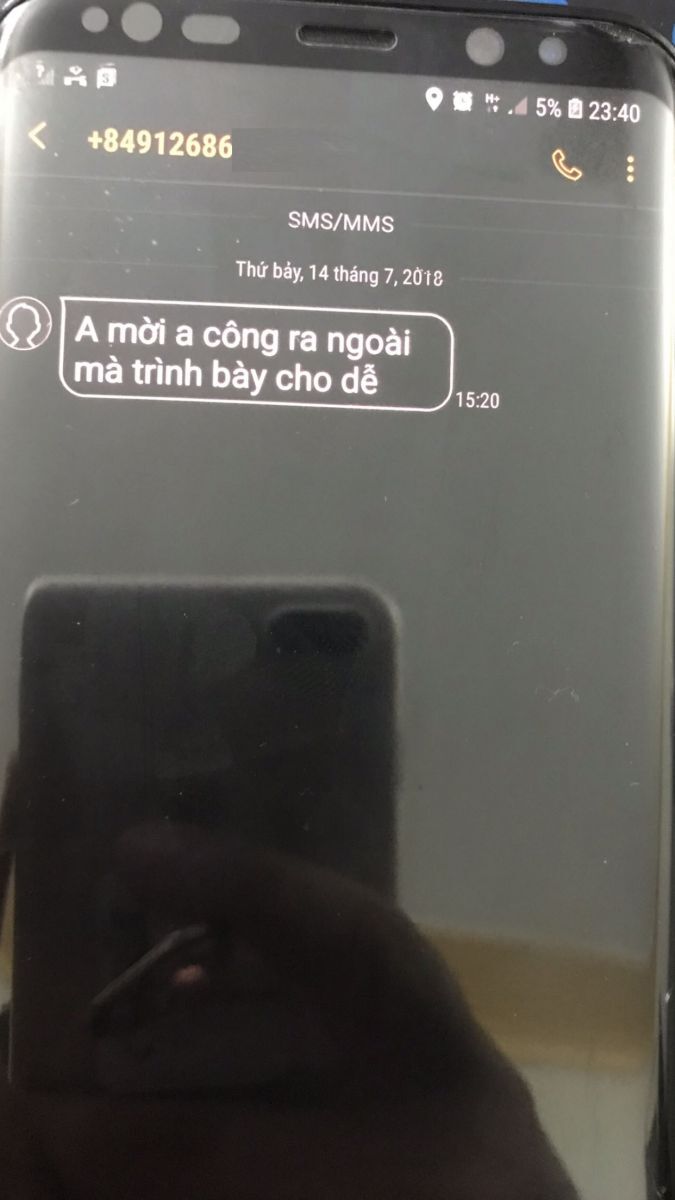 Chưa hết, theo phản ánh của anh B.H.T, trong quá trình làm việc, vì trong phòng có nhiều người, anh Tân còn nhắn tin từ số máy 0912xxx135 vào máy di động của anh B.H.T với nội dung khá “mờ ám”: “A (Anh- PV) mời anh Công ra ngoài mà trình bày cho dễ”. Vì muốn giao hàng đúng thời hạn, cũng vì tàu đang gặp sự cố cần được sửa chữa gấp, anh B.H.T đành ngậm ngùi đồng ý với sự hướng dẫn của Thượng úy Nguyễn Minh Tân.