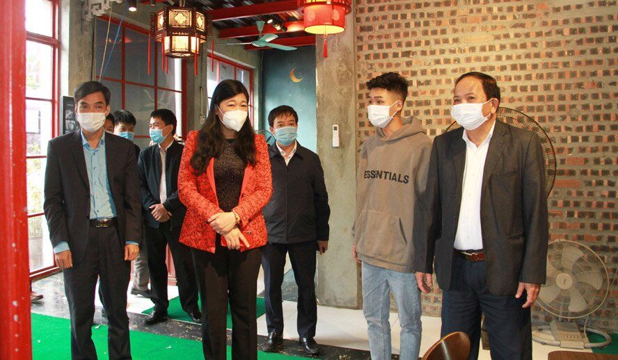 Đoàn công tác kiểm tra thực tế chấp hành phòng, chống dịch tại cơ sở kinh doanh ăn uống trên địa bàn phường Phú Thịnh.
