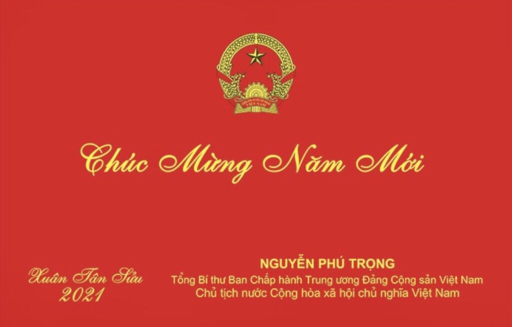 Nhân dịp năm mới 2021 và đón Tết cổ truyền Tân Sửu, Tổng Bí thư, Chủ tịch nước Nguyễn Phú Trọng gửi thiếp chúc mừng tới toàn thể đồng bào, đồng chí, chiến sĩ trên mọi miền Tổ quốc và cộng đồng người Việt Nam ở nước ngoài.