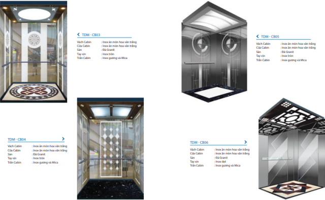 Việc chọn mẫu cabin thang máy TDM khách hàng có thể chủ động: Dựa vào cataloge khách hàng có thể chọn mẫu trần, sàn, vách bên theo thẩm mỹ và sở thích của mình. Sau đây là một số mẫu thang thang máy khách hàng thường hay chọn nhất cho các công trình, gia đình, công ty... quý khách hàng có thể tham khảo và chọn cho cơ sở của mình. Những hình ảnh chi tiết: