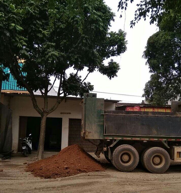 Xe tải ngang nhiên và tự ý đổ hàng loạt xe đất đỏ xuống mặt đường để lấp ổ gà, ổ voi