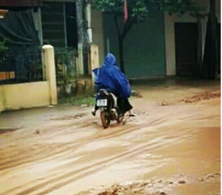 Mưa xuống mặt đường như sình lầy, cản trở lớn đến việc tham gia giao thông và cuộc sống người dân