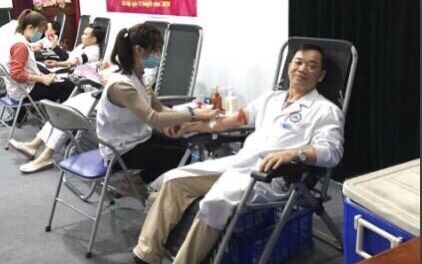 Trưởng khoa PTGM&HS Dương Anh Khoa tham gia hiến máu.