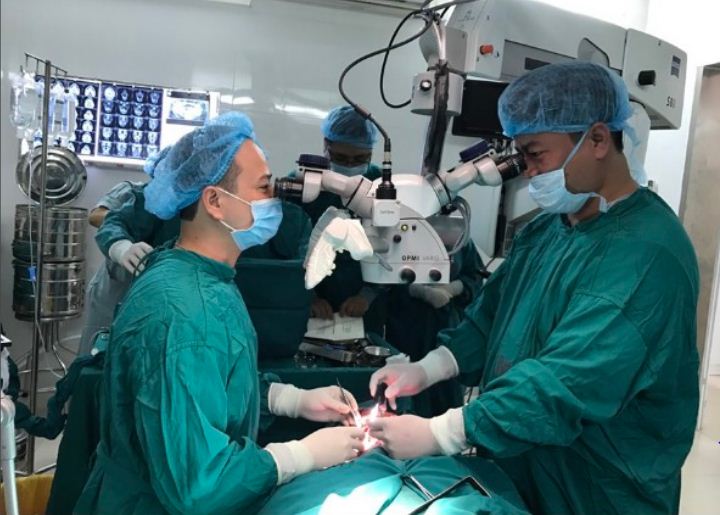 ThS.BS Lại Bình Nguyên (bên trái) tham gia phẫu thuật tái tạo xương hàm cũng như phần mềm vùng hàm mặt bằng các loại vạt vi phẫu cho người bệnh.