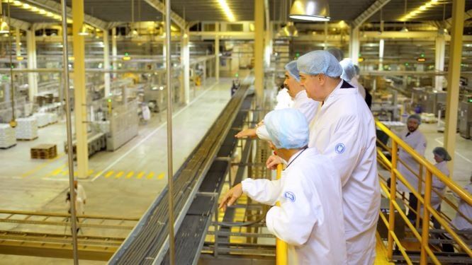Ông Nguyễn Quốc Khánh,Giám đốc Điều hành R&D của Vinamilk giới thiệu đến Thứ trưởng và Tổng Lãnh sự dây chuyền sản xuất sữa của nhà máy.