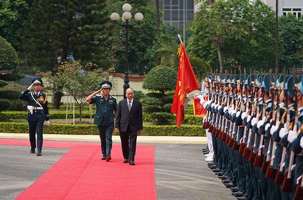 Thủ tướng duyệt đội danh dự Quân chủng Phòng không-Không quân. Ảnh: VGP/Quang Hiếu