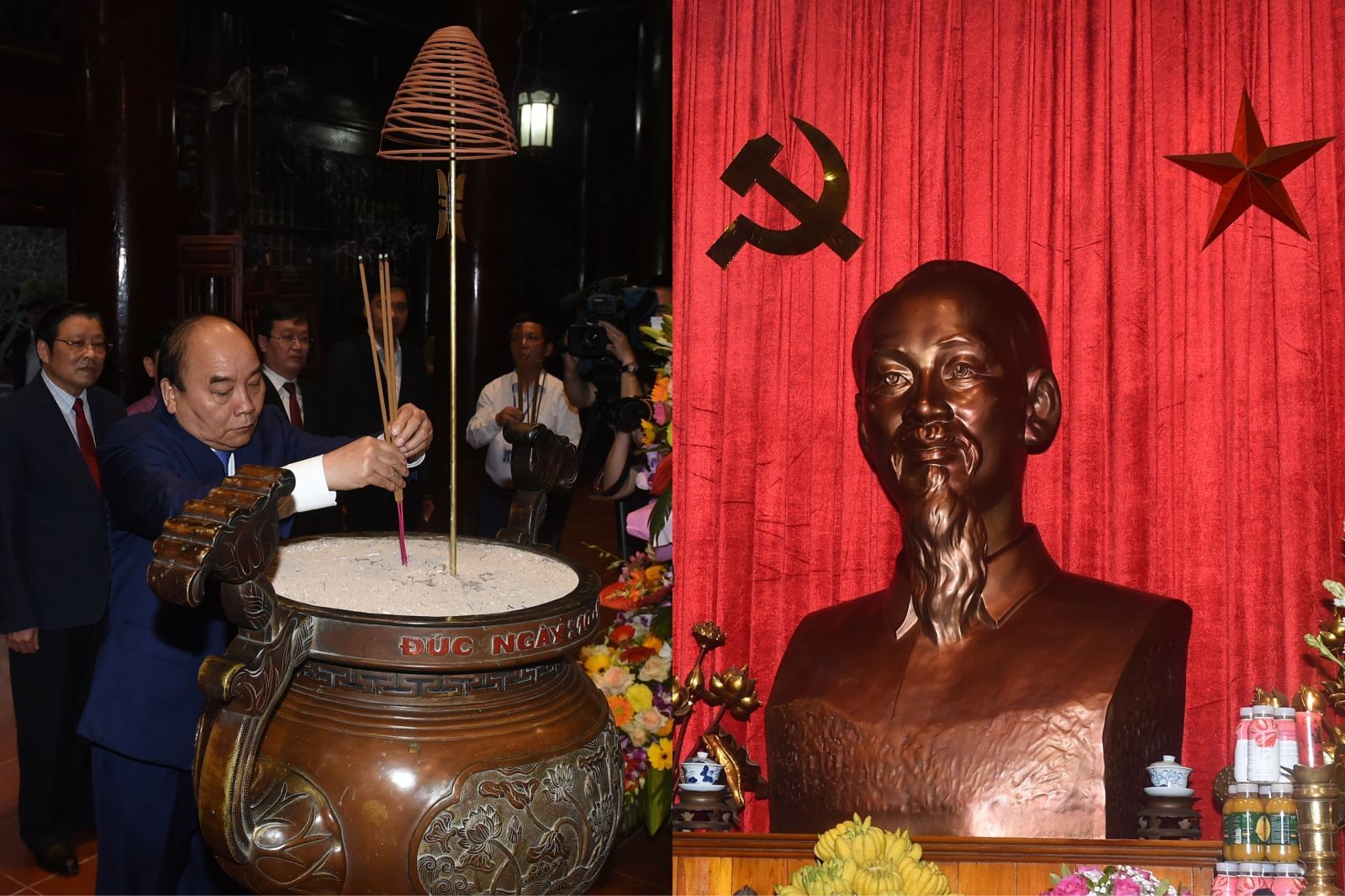 Ngay sau lễ dâng hương, Thủ tướng Nguyễn Xuân Phúc đã đi kiểm tra tiến độ thi công Nhà tưởng niệm Chủ tịch Hồ Chí Minh trong khuôn viên Khu di tích Kim Liên./.Trong chuyến công tác tại Nghệ An, Thủ tướng đã đến dâng hoa, dâng hương tưởng niệm Chủ tịch Hồ Chí Minh tại Khu di tích Kim Liên; dâng hoa, dâng hương tại Đền Chung Sơn - đền thờ gia tiên Chủ tịch Hồ Chí Minh tại núi Chung, xã Kim Liên, huyện Nam Đàn.