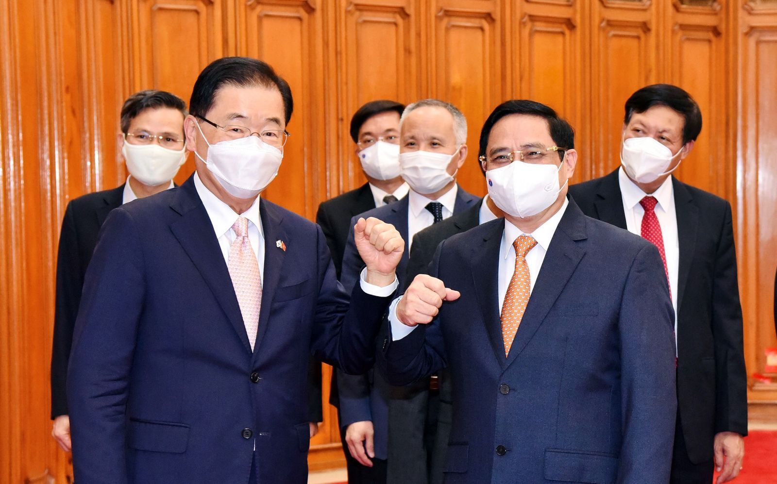 Thủ tướng Chính phủ Phạm Minh Chính và Bộ trưởng Ngoại giao Hàn Quốc Chung Eui Yong - Ảnh: VGP/Nhật Bắc