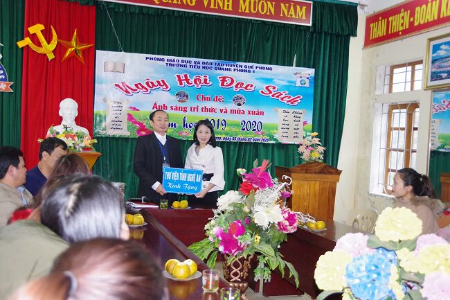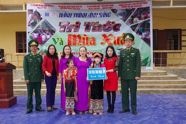 VNHN - Những ngày đầu năm Canh tý – 2020, hòa trong không khí chung mừng Đảng, mừng Xuân, mừng đất nước đổi mới, Thư viện tỉnh Nghệ An phối hợp với Bộ chỉ huy Biên phòng tỉnh Nghệ An, phòng Giáo dục Quế Phong, Trung tâm Văn hóa- Thể thao và Truyền thông huyện Quế phong, đã tiếp tục mang “ánh sáng tri thức” – phát triển văn hóa đọc - đến với ba trường tiểu học (Trường tiểu học Hạnh Dịch, trường tiểu học Tri Lễ và trường tiểu học huyện Quế Phong) và hai Đồn biên Phòng trên địa bàn huyện Quế Phong. Đây là hoạt động đã được duy trì nhiều năm nay với sự quan tâm của các cấp, các ngành và sự chung tay góp sức của các doanh nghiệp, doanh nhân.