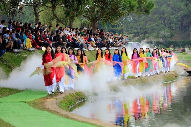 Trình diễn thời trang tơ lụa Bảo Lộc năm 2018, bên hồ Xuân Hương – Đà Lạt.