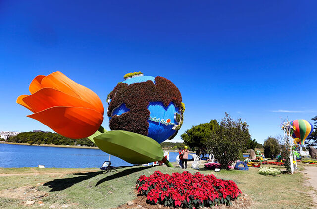 Nhiều không gian hoa và tiểu cảnh bên hồ Xuân Hương được kéo dài đến hết kỳ nghỉ Tết Dương lịch 2020.