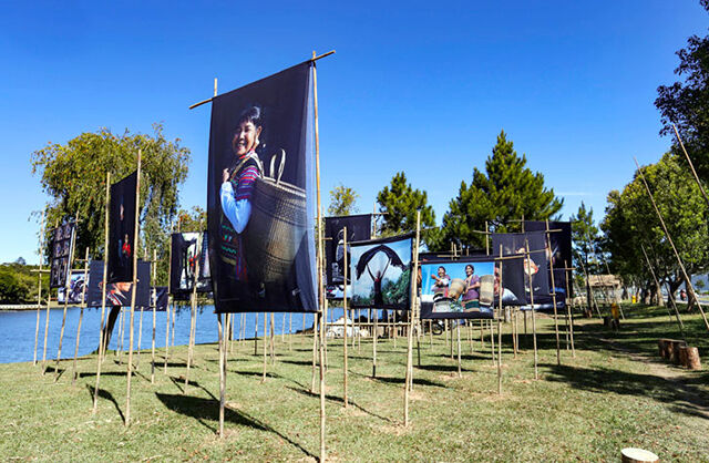Cũng chính trong không gian này, du khách được hòa mình trong những khoảnh khắc chân thật của đời sống ba tộc người Mạ, Cơ Ho và Chu Ru, qua những bộ ảnh nghệ thuật in trên lụa của nhiếp ảnh gia Nguyễn Hoài Linh. Tại đây, khách tham quan còn được gặp gỡ, trò chuyện với những nghệ nhân, già làng hay những sơn nữ, là những nhân vật bước ra từ những tác phẩm ảnh nghệ thuật. Phó Chủ tịch UBND TP Đà Lạt Trần Thị Vũ Loan cho biết, với bốn nội dung chính, gồm chương trình biểu diễn thời trang tơ lụa, trưng bày công cụ lao động của người Mạ, Cơ Ho, Chu Ru và tơ lụa trong không gian nhà Dài, cùng triển lãm ảnh nghệ thuật trên nền lụa; đó là sự “gặp gỡ” mới lạ về ý tưởng, giàu giá trị nghệ thuật, giá trị văn hóa và nhân văn, được tổ chức lần đầu tại Festival Hoa Đà Lạt.
