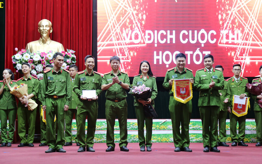 Thượng tá, Nguyễn Huy Bình - Trưởng khoa trao giải Nhất cho Đội Liên thông vừa làm vừa học khóa 31 tại Hội thi học tốt Hội thi học tốt chuyên ngành Cảnh sát hình sự năm 2020.