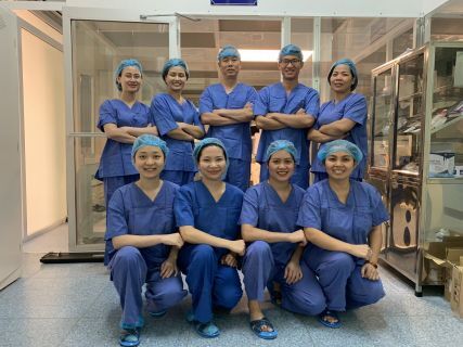 PGS.TS Trịnh Thế Sơn cùng ekip phẫu thuật.