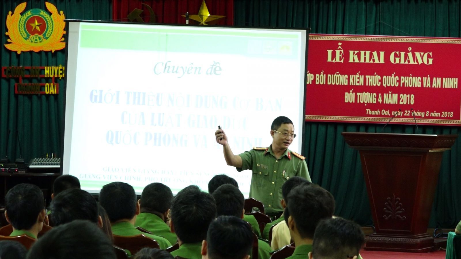 Thượng tá, TS. Nguyễn Ngọc Hà giảng bài cho lớp bồi dưỡng kiến thức quốc phòng và an ninh đối tượng 4.