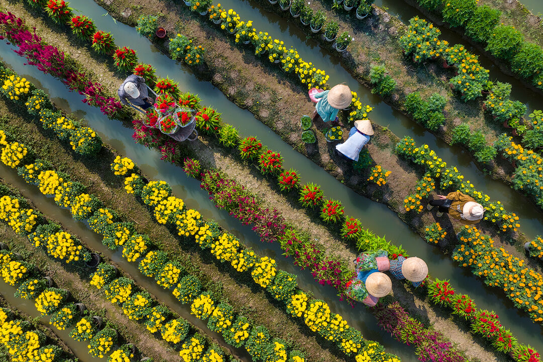 Làng hoa Mỹ Phong (TP. Mỹ Tho, tỉnh Tiền Giang) đã không còn xa lạ với các thương lái buôn hoa tết và các nhiếp ảnh gia đang đi tìm cho mình những khoảnh khắc đẹp vào dịp Tết đến xuân về. Vào những ngày này, đến làng hoa Mỹ Phong càng cảm nhận rõ hơn không khí tết sớm.