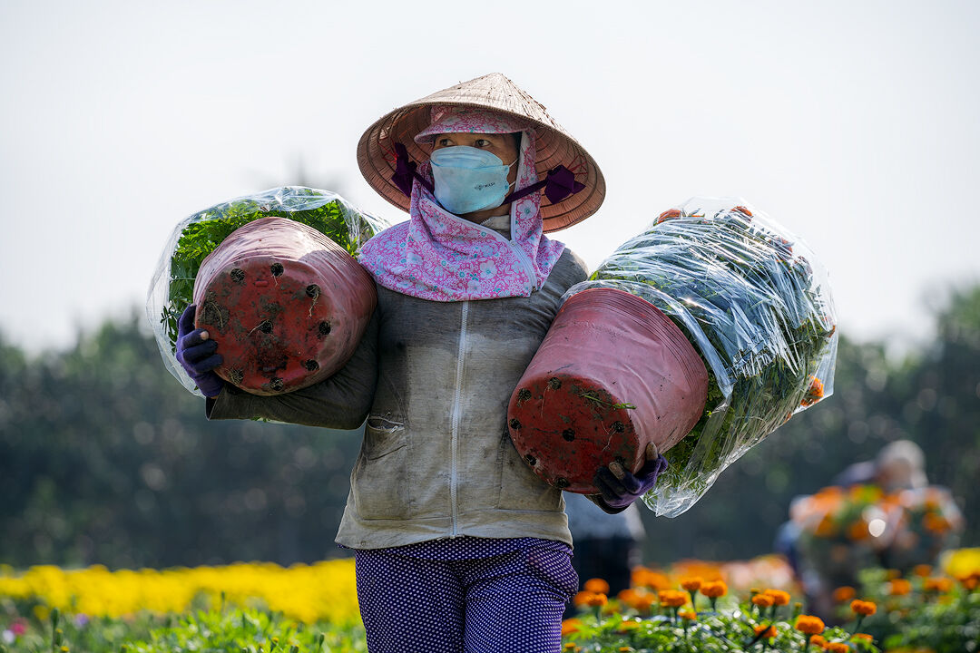 Dù mệt, nhưng niềm vui khi bán được hoa khiến các nhà vườn luôn cười tươi mỗi khi bắt gặp ống kính
