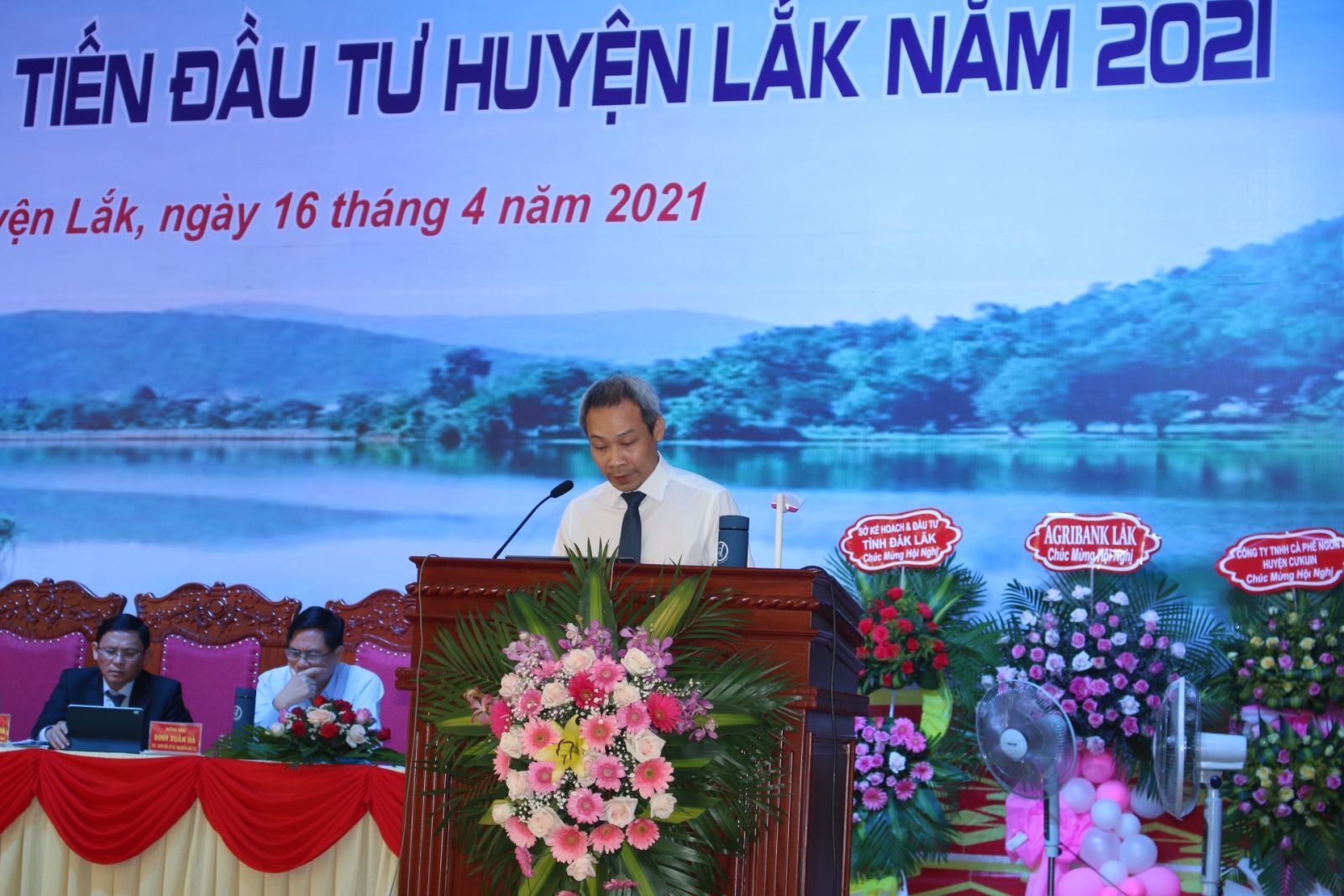 Tại Hội nghị, đồng chí Phan Đức Hiếu - Phó viện trưởng Viện nghiên cứu quản lý Kinh tế Trung Ương nhấn mạnh: Phát huy thế mạnh, khơi dậy được tiềm năng huyện cần có cơ chế, chính sách ưu tiên đặc thù, tập trung phát triển các lĩnh vực huyện có tiềm năng thế mạnh như: Công nghiệp chế biến sâu hiện đại; sản phẩm nông nghiệp công nghệ cao gắn với công nghiệp chế biến, dịch vụ chế biến…Bên cạnh việc thu hút đầu tư khai thác các thế mạnh của huyện Lắk…"Tôi thực sự ấn tượng, đánh giá cao sáng kiến huyện Lắk khi tổ chức riêng 1 Hội nghị xúc tiến đầu tư quy mô lớn; qua đó thể hiện cán bộ cấp huyện đã thay đổi tư duy trong việc phát triển địa phương. Nhiều năm nay huyện Lắk đã tập trung phát triển kinh tế tư nhân, xem đó như là động lực phát triển nền kinh tế. Tuy nhiên, khi đầu tư, phát triển các dự án lớn các bên liên quan cần tránh gây tác động đến môi trường, hệ sinh thái tự nhiên vốn có của địa phương".