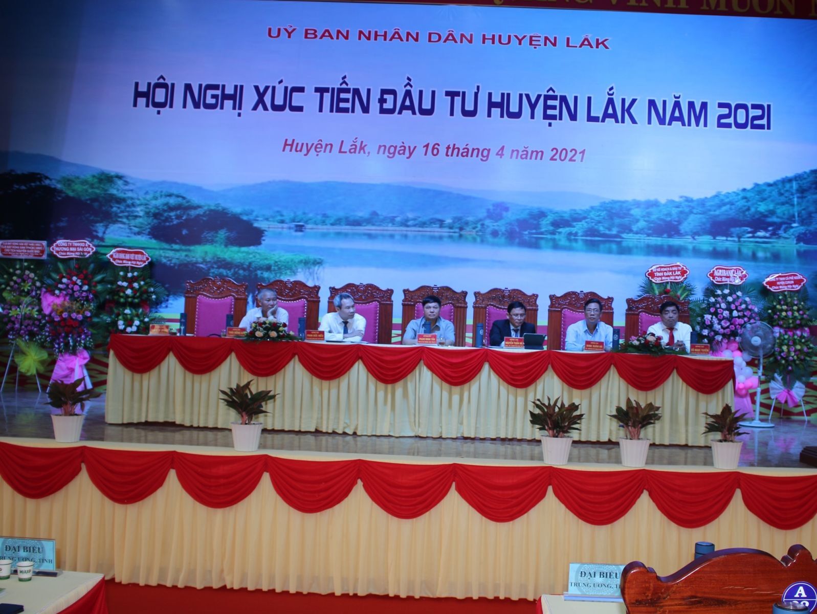 Sáng ngày 16/4, UBND huyện Lắk tổ chức Hội nghị xúc tiến đầu tư năm 2021.Tham dự hội nghị có đồng chí Phan Đức Hiếu - Phó viện trưởng Viện nghiên cứu quản lý Kinh tế Trung ương, đồng chí Phạm Minh Tấn - Phó Bí thư Thường trực Tỉnh ủy Đắk Lắk, đồng chí Nguyễn Tuấn Hà - Phó chủ tịch UBND tỉnh Đắk Lắk, đồng chí Thái Hồng Hà, Giám đốc Sở VHTTDL tỉnh Đắk Lắk, đồng chí Võ Ngọc Tuyên - Tỉnh ủy viên, Bí thư huyện ủy Lắk, đồng chí Nay Y Phú Phó Bí thư - Chủ tịch UBND huyện Lắk, cùng các đồng chí lãnh đạo, Đại diện các Sở, ban ngành và Lãnh đạo tỉnh ủy, Thành ủy, HĐND, UBND, các Hiệp hội, lãnh đạo các Tập đoàn, doanh nghiệp, các nhà đầu tư, các cơ quan thông tấn báo chí trung ương và địa phương cùng về dự.