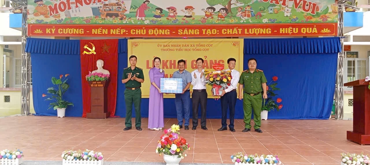 Lễ khai giảng năm nay có sự tham dự của nhiều vị lãnh đạo quan trọng, bao gồm lãnh đạo Sở GD&ĐT, lãnh đạo xã Tổng Cọt, Ban Văn Hóa, đại diện Đồn Biên phòng Tổng Cọt và Công xã. Sự hiện diện của họ thể hiện sự quan tâm và ủng hộ đối với ngành giáo dục nói chung và trường Tiểu học xã Tổng Cọt nói riêng.