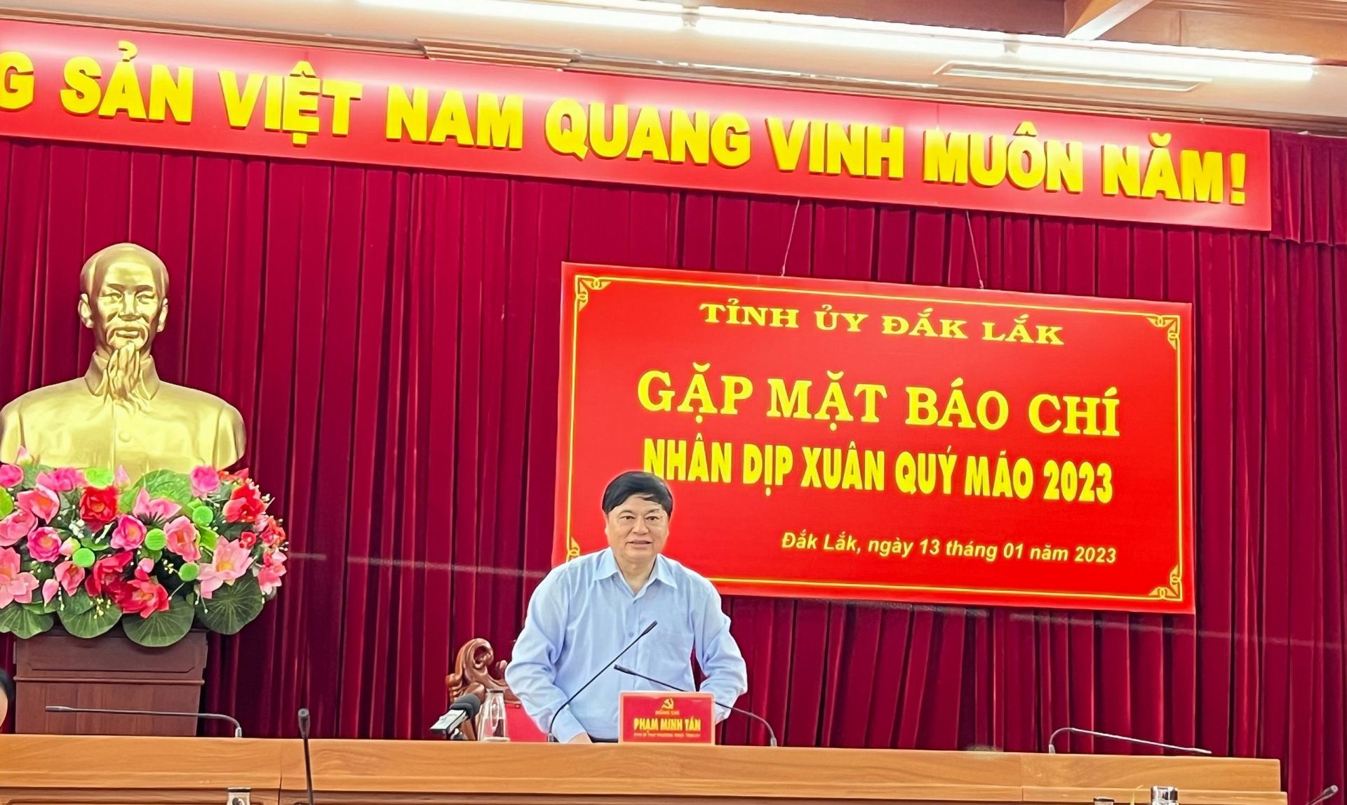 Phát biểu chỉ đạo tại buổi gặp mặt, đồng chí Phạm Minh Tấn - Phó Bí thư thường trực Tỉnh uỷ ghi nhận và biểu dương những đóng góp tích cực của các đồng chí lãnh đạo, các cơ quan báo chí trên địa bàn. Công tác thông tin trên báo chí thể hiện rõ hơn vai trò dẫn dắt, chủ động, kịp thời, đạt hiệu quả trong tuyên truyền về những vấn đề, sự kiện quan trọng của đất nước, của tỉnh, góp phần tích cực các đồng thuận trong xã hội…