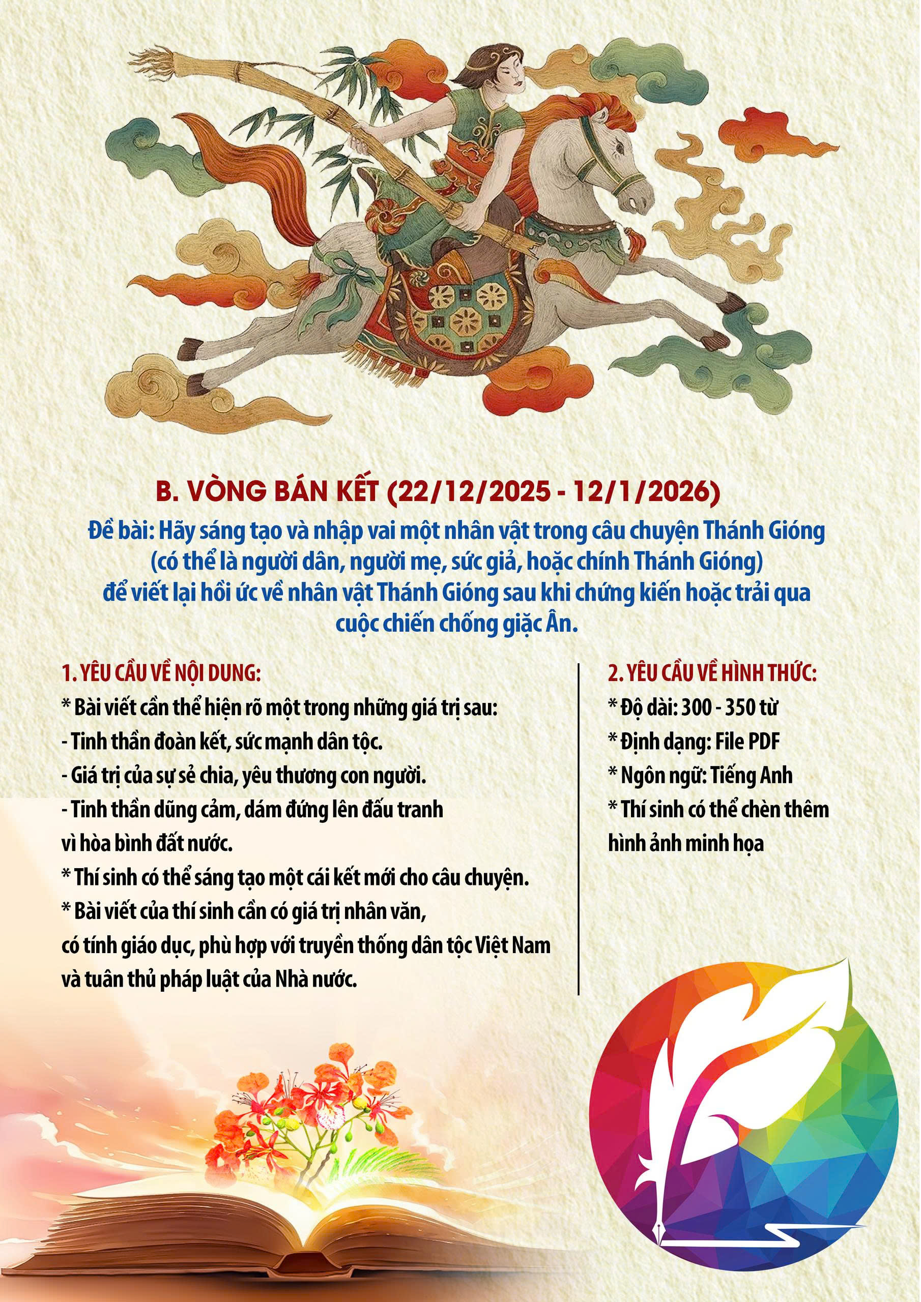 Cuộc thi hướng tới việc giúp học sinh Việt Nam thể hiện khả năng sáng tạo và tư duy quốc tế thông qua việc viết lại câu chuyện cổ tích Việt Nam (Thánh Gióng) bằng tiếng Anh; khơi dậy niềm say mê đọc sách, yêu văn hoá Việt Nam và trân trọng giá trị của các di sản dân gian thông qua ngoại ngữ với tư duy trong thời kỳ hội nhập; đồng thời góp phần lan tỏa giá trị nhân văn, tinh thần yêu nước và ý chí kiên cường của huyền tích người Anh hùng trong truyện cổ dân gian xưa đến với thế hệ trẻ; khuyến khích động viên tinh thần học tập, nỗ lực cố gắng học tiếng Anh của học sinh các bậc học phổ thông theo tinh thần nội dung Quyết định số 2371/QĐ-TTg ngày 27/10/2025 của Thủ tướng Chính phủ phê duyệt đề án “Đưa tiếng Anh thành ngôn ngữ thứ hai trong trường học giai đoạn 2025-2035, tầm nhìn đến 2045”. Cuộc thi góp phần quảng bá hình ảnh đất nước, con người, văn hoá và khát vọng Việt Nam tới bạn bè quốc tế qua lăng kính hiện đại của thế hệ trẻ thời kỳ hội nhập quốc tế.