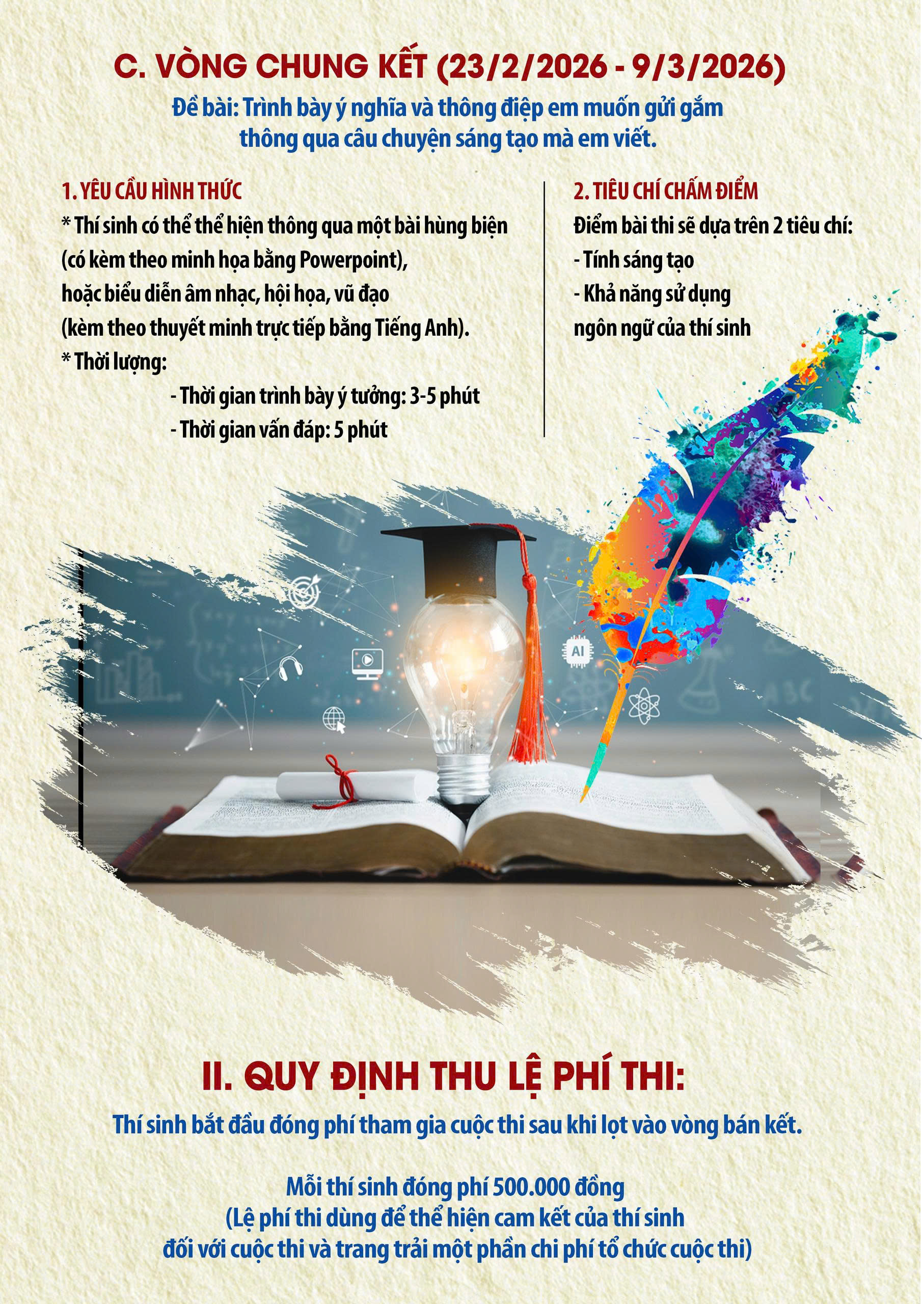 Cuộc thi được bắt đầu từ trung tuần tháng 11/2025 đến tháng 3/2026, gồm các vòng thi trực tuyến và đêm chung kết tại Hà Nội - nơi các tác phẩm xuất sắc sẽ được trình bày và giao lưu với đại diện cơ quan giáo dục, báo chí và BGK Quốc tế.