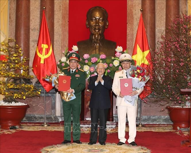 Thay mặt lãnh đạo Đảng, Nhà nước, Tổng Bí thư, Chủ tịch nước Nguyễn Phú Trọng đặc biệt chúc mừng hai đồng chí vinh dự được phong quân hàm dịp này; khẳng định đây là niềm vinh dự, tự hào không chỉ đối với cá nhân và gia đình của mỗi đồng chí mà là niềm tự hào, niềm vui chung đối với toàn thể cán bộ, chiến sĩ lực lượng Quân đội và lực lượng Công an nhân dân.