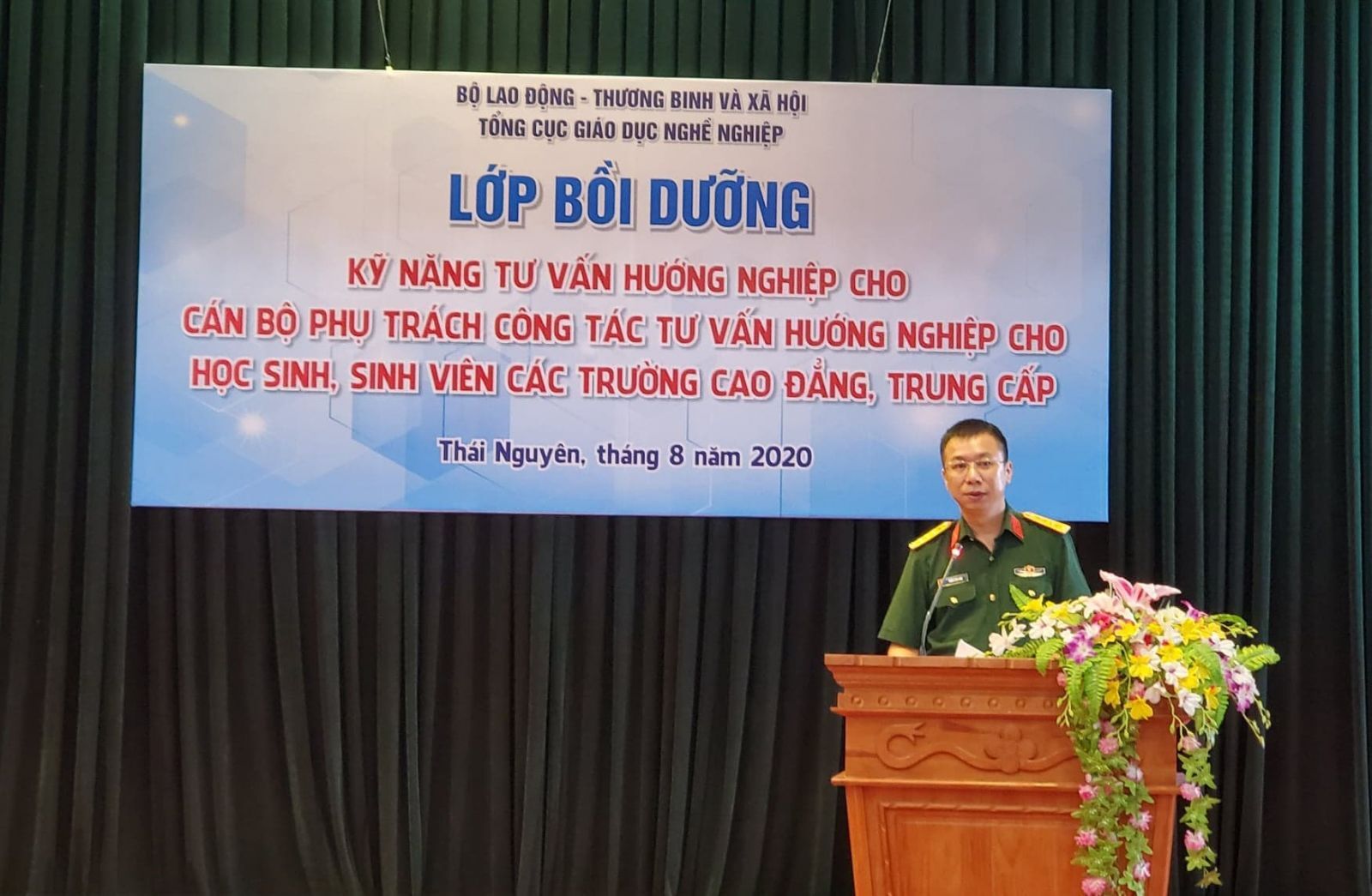 VNHN - Ngày 03/8/2020 tại Trường Cao đẳng nghề số 1 - Bộ Quốc phòng, Tổng cục Giáo dục nghề nghiệp (Bộ Lao động -Thương binh và Xã hội) đã phối hợp với nhà trường tổ chức lớp bồi dưỡng kỹ năng tư vấn, hướng nghiệp, kỹ năng mềm cho giáo viên, cán bộ phụ trách công tác tư vấn, hướng nghiệp, cán bộ phụ trách công tác học sinh sinh viên các trường cao đẳng, trung cấp khu vực miền Bắc.