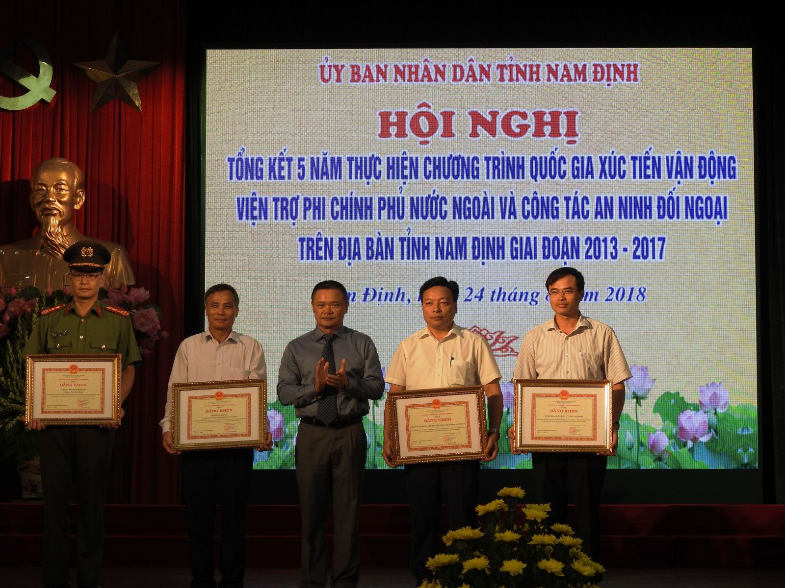 VNHNO - Ngày 24/8, UBND tỉnh Nam Định long trọng tổ chức Hội nghị Tổng kết 5 năm thực hiện chương trình Quốc gia xúc tiến vận động viện trợ phi chính phủ nước ngoài và công tác an ninh đối ngoại trên địa bàn tỉnh Nam Định giai đoạn 2013 – 2017 tại Hội trường Công an tỉnh Nam Định.